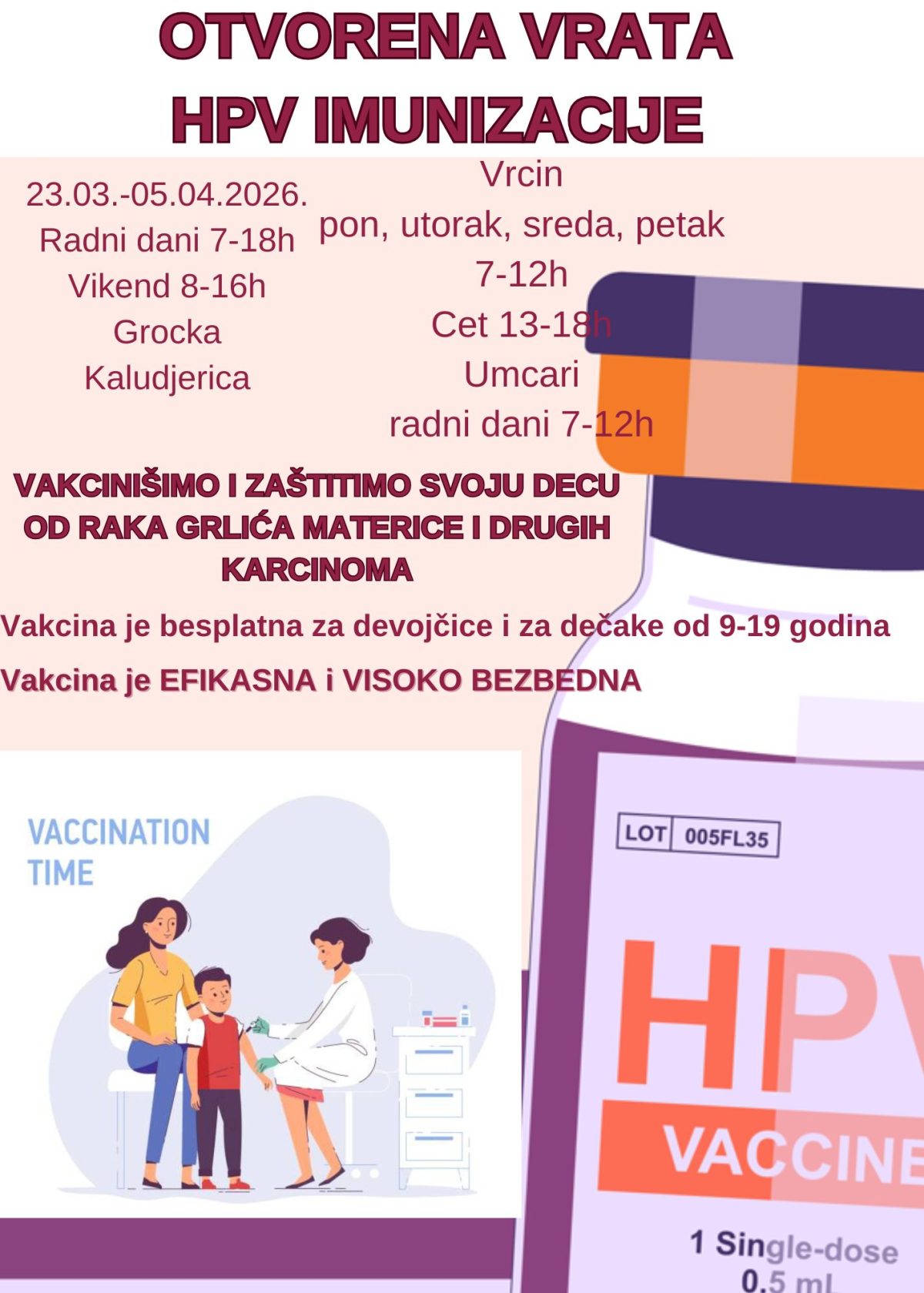 ХПВ ВАКЦИНАЦИЈА-отворена врата-март 2026